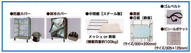 防塵カバーは外掛け、保冷カバーは内掛けとなります。保冷カバーと中間棚の併用はできません。