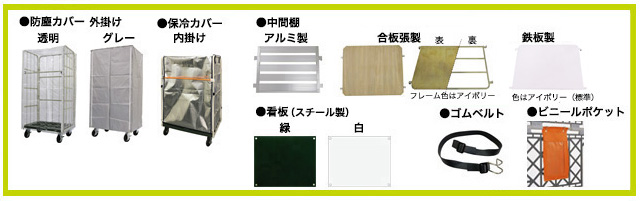 防塵カバーは外掛け、保冷カバーは内掛けとなります。保冷カバーと中間棚の併用はできません。