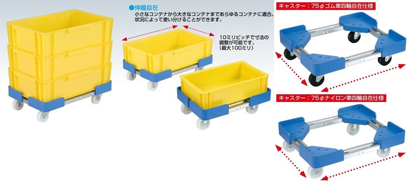 キャスター:φ75・4輪自在・積載荷重200kg・高さ160mm